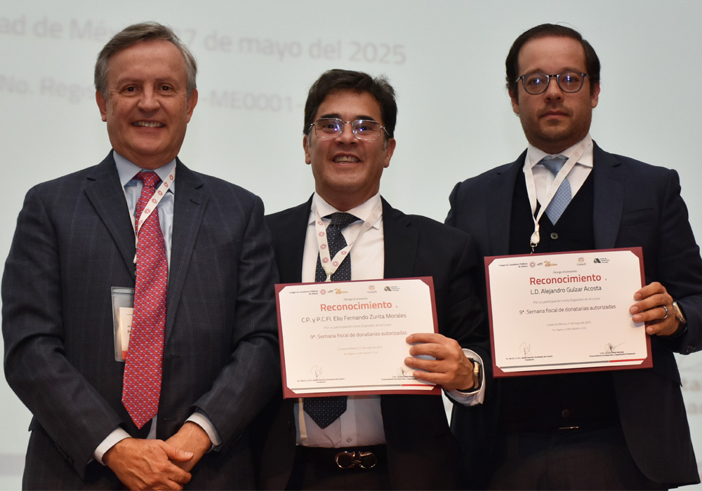 Se realizaron foros, semanas, simposios y jornadas especializadas que consolidaron espacios de análisis técnico y diálogo profesional, con la participación de autoridades, especialistas nacionales e internacionales, así como representantes de organismos públicos y privados. Destacó la 1.ª Cumbre para donatarias autorizadas: desafíos y oportunidades 2025, la cual se desarrolló a través de mesas de trabajo simultáneas en un formato híbrido. Con ella se reanudaron las actividades presenciales en el Colegio y se propició la participación de asistentes de distintos estados de la República. También, se realizó la 9.a Semana fiscal de las donatarias autorizadas, en el Hospital Español, con la participación de instituciones y asociaciones.